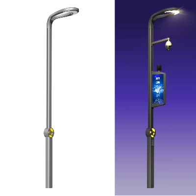 菲尼特智能智慧燈桿不僅擁有基本的智能照明功能,還集信息發(fā)布功能、信息采集功能、信息傳輸和控制功能、綠色新能源充電、環(huán)境監(jiān)測等于一身,通過配備的戶外小間距LED顯示屏、攝像頭、無線WiFi,可實現(xiàn) LED 路燈照明、LED 顯示屏顯示、通訊與控制、 視頻監(jiān)控、人/物監(jiān)測、USB應急充電和緊急呼叫等不同應用。